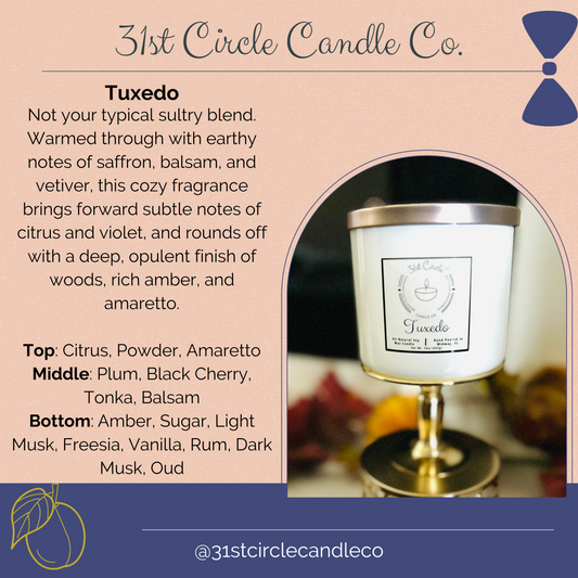We love making candles here at 31st Circle Candle Co. All of our candles are made with 100% sox wax without any toxic chemicals like phthalates, carcinogens, reproductive, organ, and acute toxins for the cleanest burn possible. We handpour our candles to inspire and spark joy through expertly crafted scents to fill your home with love.