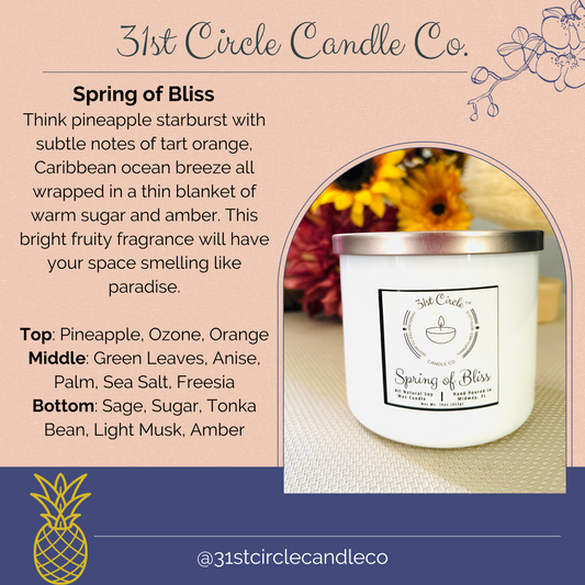 We love making candles here at 31st Circle Candle Co. All of our candles are made with 100% sox wax without any toxic chemicals like phthalates, carcinogens, reproductive, organ, and acute toxins for the cleanest burn possible. We handpour our candles to inspire and spark joy through expertly crafted scents to fill your home with love.